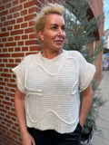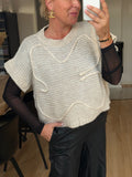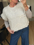 BESKRIVELSE: Sød kort bredstrik-vest med fint mønster foran, perfekt med en skjorte eller mesh bluse under