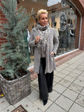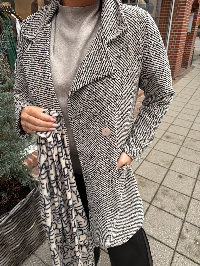 BESKRIVELSE: Smuk jakke med lange ærmer og revir. Den har leopard-for.