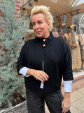 BESKRIVELSE: Lækker strik / cardigan med flot skorstenskrave og 3/4 lange ærmer. Den blødeste kvalitet.