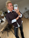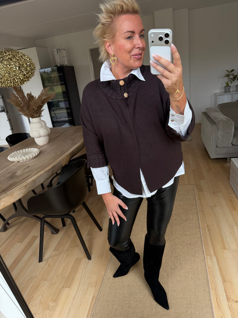 BESKRIVELSE: Lækker strik / cardigan med flot skorstenskrave og 3/4 lange ærmer. Den blødeste kvalitet.