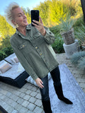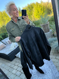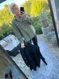 The shirt is fully buttoned and features a longer hem at the back, offering a flattering drape and modern silhouette. Wear it buttoned up for a sleek look, or open over a tee for a more laid-back vibe. However you style it, Anige delivers instant edge and effortless style.