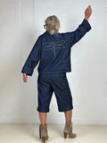 Jakken er i denim udvendig med 2 frontlommer samt 4 smukke guldknapper.