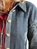 BESKRIVELSE: Unik denimjakke lavet af gamle jeans, hvilket betyder ikke to er ens.