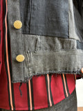Jakken har store guldknapper foran, samt ved ærmer.