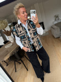 BESKRIVELSE: Lækker oversize vest med smukke guld knapper på stolpe, som er gennemknappet.