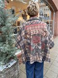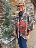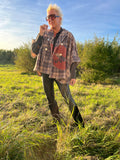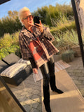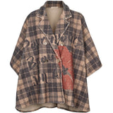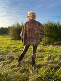 BESKRIVELSE: Super flot vid jakke / slag / poncho i fræk ternet printet kvalitet. Den er opkradset, så den ligner uld. De er knapper i siden.