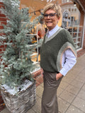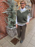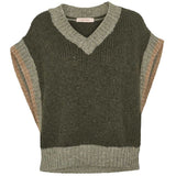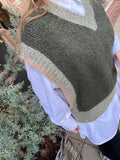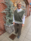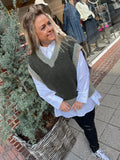 BESKRIVELSE: Super flot vid vest med V-udskæring. Den er armygrøn, grå og sand.