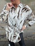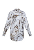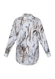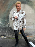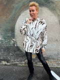 BESKRIVELSE: love1107-1 er en skjorte med et iøjnefaldende mønster og en klassisk krave. Den har en skjult knaplukning, lange ærmer med manchetter og en løs pasform. Modellen har en str. S på.