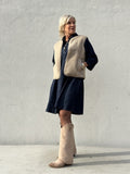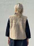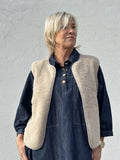 BESKRIVELSE: Kort teddyvest med stort guld logo broderi på ryg.