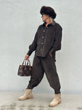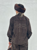Blusen lukkes foran med smukke guldknapper, som tilfører et elegant og luksuriøst touch. På ryggen har den et stort guld-logo broderi, der gør designet unikt og iøjnefaldende.