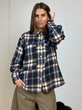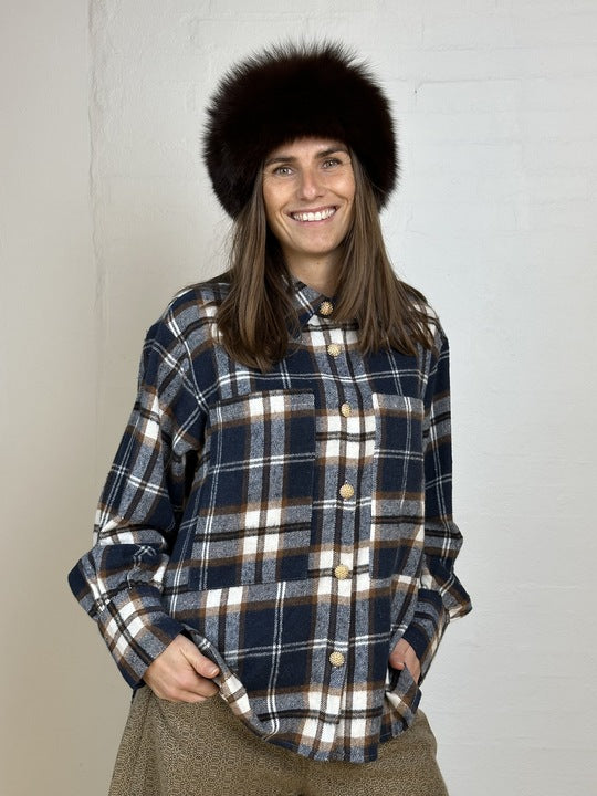 BESKRIVELSE: En lækker oversized skjorte i tern, som også kan bruges som en let jakke. Skjorten har store guldknapper på stolpen foran samt på ærmerne, der giver et stilfuldt touch.