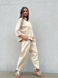 BESKRIVELSE: Den moderigtige barrel-buks i blød canvas har et afslappet, men stilfuldt snit med masser af vidde i lårene og en smallere afslutning ved anklerne. Modellen stumper let og giver et cool, moderne udtryk.