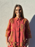 BESKRIVELSE: En feminin og stilfuld skjortebluse i blød bomulds-jacquard, der kombinerer komfort med et eksklusivt og raffineret udtryk. Blusen har en afslappet, let oversized pasform, der falder løst og elegant over kroppen og skaber et moderne, behageligt look.