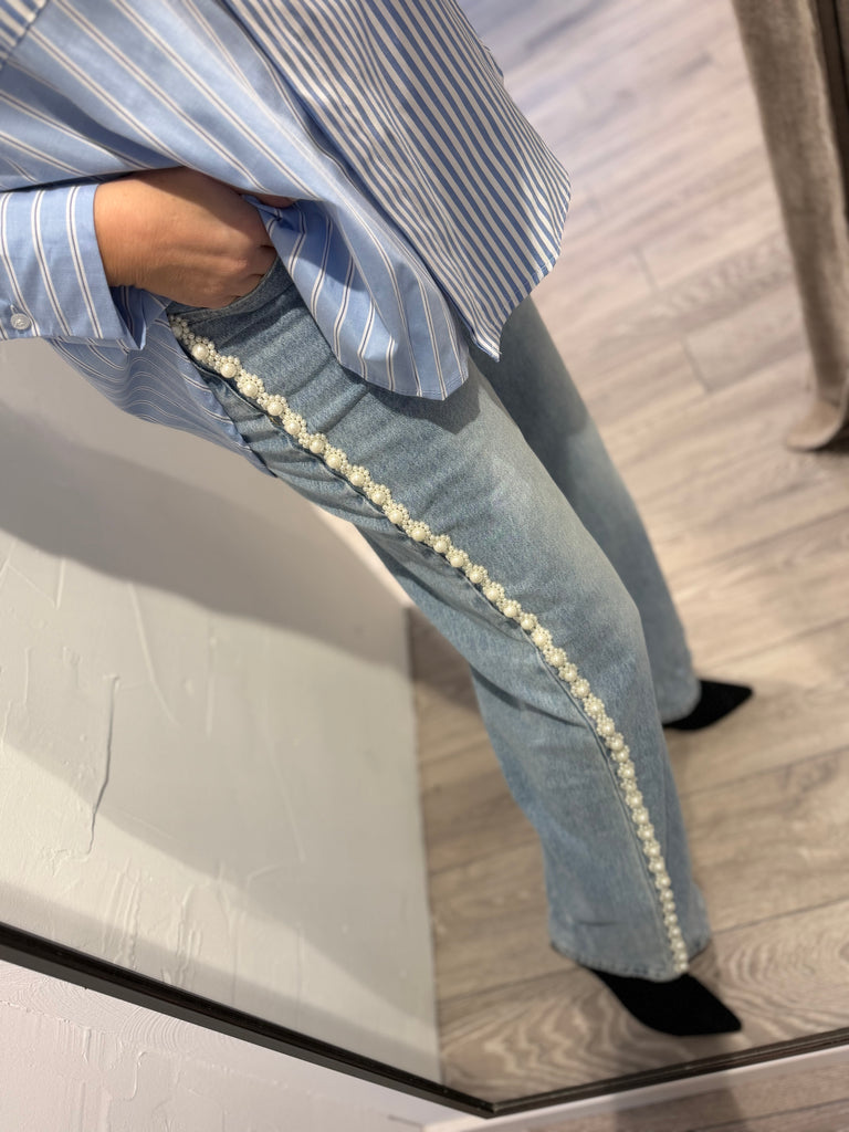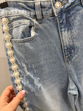 Qnuz 9254 denim jeans Ribbon & Pearls