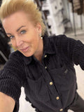 BESKRIVELSE: Fin jernbanefløjl skjortebluse, med smukke guldknapper på åbningen foran.