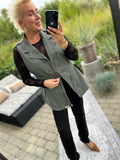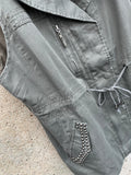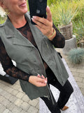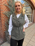 BESKRIVELSE: Smart vest med flotte detaljer med nitter. Den har trykknapper og lynlås, samt bindebånd i taljen.