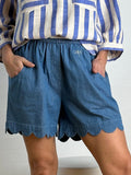 BESKRIVELSE: Lækker blød og luftig denimshorts, med bølgedetalje i bund.