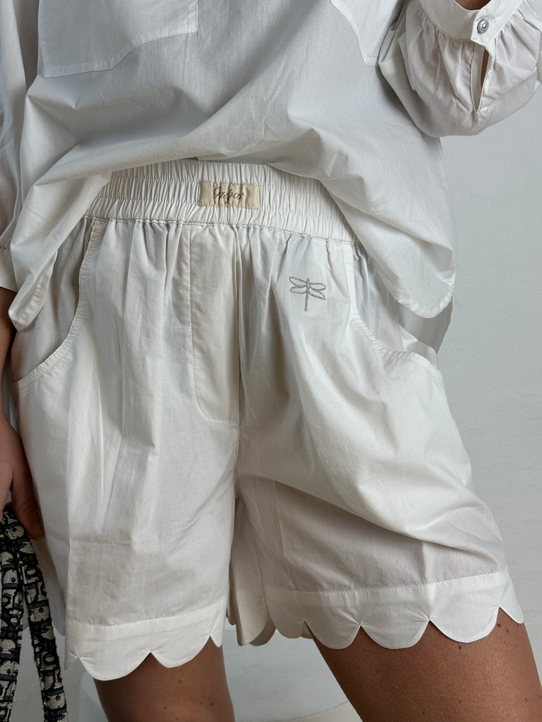 BESKRIVELSE: Honolulu Shorts er den perfekte kombination af komfort, enkelhed og feminine detaljer. Den rene, ensfarvede poplin giver et let og stilrent udtryk, som gør dem nemme at style – uanset om du går efter et afslappet hverdagslook eller et mere gennemført sæt.
