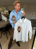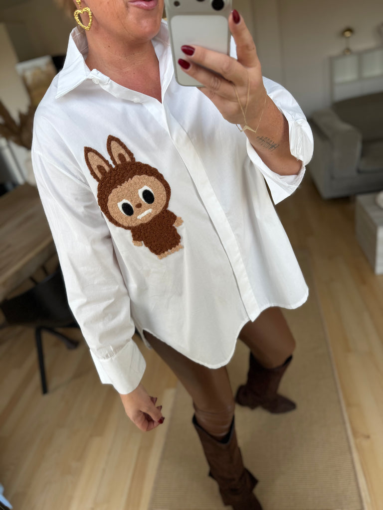 BESKRIVELSE: Smart skjorte / bluse med lange ærmer. Den har en sød bamse på fronten.