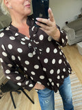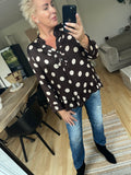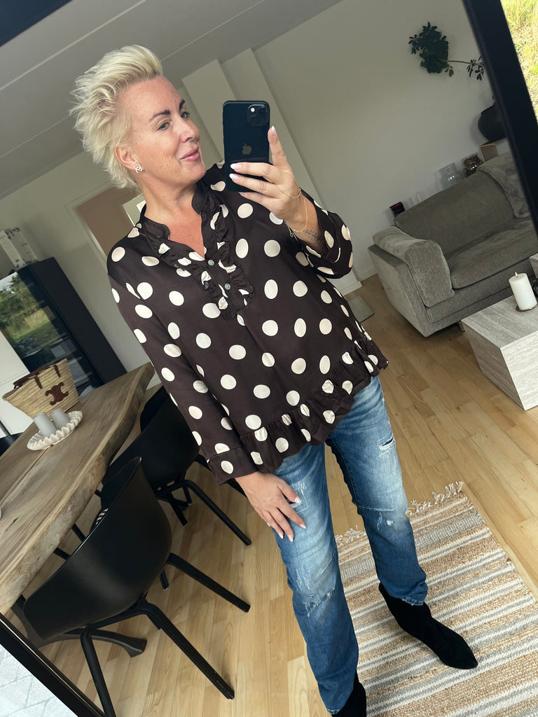BESKRIVELSE: Smart skjorte / bluse med lange ærmer og krave. Den er lavet i det smukkeste stof med prikker.