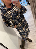 En lækker lang og lun oversized ternet skjorte, der kombinerer afslappet komfort med et moderne, feminint udtryk. Skjorten kan både bruges som skjorte og kjole, hvilket gør den til et alsidigt valg i garderoben.
