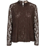 BESKRIVELSE: Super flot skjorte med rund hals og lange ærmer. Der er flotte læg og blondedetaljer.