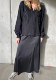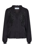 BESKRIVELSE: love1483 er en feminin bluse med paliet og perle detaljer. Blusen har lange ærmer, v-hals og knappelukning. Modellen har en str. S på.