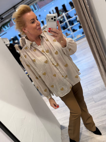 QNUZ 9102 Embrodery skjorte hearts taupe