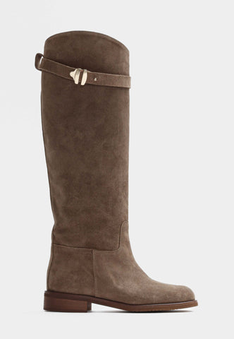 BUKELA Etta lang støvle suede taupe