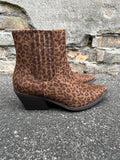 BESKRIVELSE: Smart kort støvle med elastik og lameller i siden, så den er nem at komme i, plus der er lynlås indvendig. Hælen måler 6 cm.