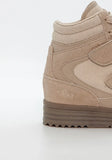 BESKRIVELSE: En virkelig stilfuld og trendy sneaker med en indbygget platformshæl. Dette gør skoen velegnet til både hverdag og fest, og den kan matches lige så godt med jeans som med en kjole. Skoen er lavet af et tykkere stof med ruskindsdetaljer og har både snørebånd og velcrolukning. Hælen er 8 cm, og skafthøjden målt bagfra er i alt 16,5 cm.