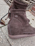 BESKRIVELSE: Emmy er en high-top wedge-sneaker lavet af 100% certificeret ruskind. Indersålen har en blød base af let, stødabsorberende EVA-skum, der sikrer stabilitet og komfort. Skoen er færdig med en slidstærk gummiydersål og har en detalje i upcycled fiskelæder med ASC-certificering. WODENs Natural Soft Technology™ sikrer optimal komfort og støtte.