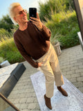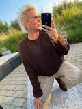 BESKRIVELSE: Lækker strik med O-udskæring og lange ærmer. Den blødeste kvalitet. Der er rib i halsudskæringen.