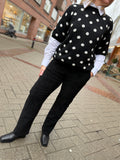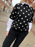 BESKRIVELSE: Skøn prikket strik med rund hals og korte ærmer.