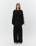• Slidser langs ærmerne med dekorative sløjfer hele vejen ned