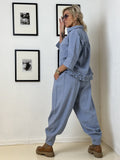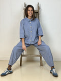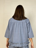 BESKRIVELSE: Fin skjortebluse i kanvas, med smukke guldknapper på åbningen foran.