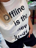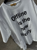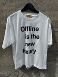 BESKRIVELSE: Super smart T-shirt med teksten Offline is the new luxury. Teksten er sort.