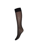 BESKRIVELSE: Strømpe til knæet i lækkert prikket og ternet mønster. Strømperne er lavet i 20 denier.