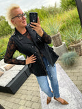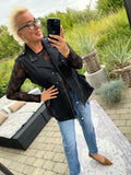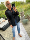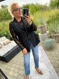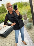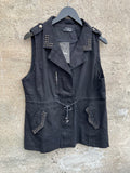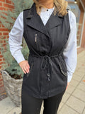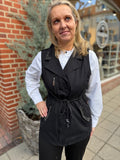 BESKRIVELSE: Smart vest med flotte detaljer med nitter. Den har trykknapper og lynlås, samt bindebånd i taljen.