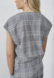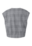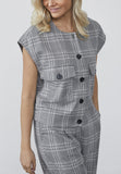 BESKRIVELSE: love1287 er en oversize vest i tern. Vesten er detaljeret med to front lommer med klap og knap og elastik nederst. Modellen har en str. S på. Helle (lyst kort hår) har L på.