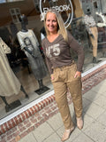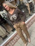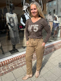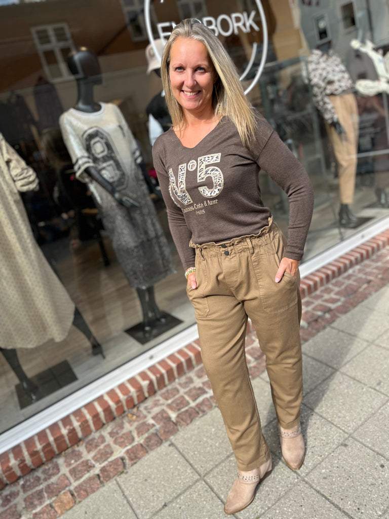 BESKRIVELSE: Smart buks med stræk og elastik i taljen. Der er lommer i siden i begge sider foran. De kan bruges med eller uden opsmøj.
