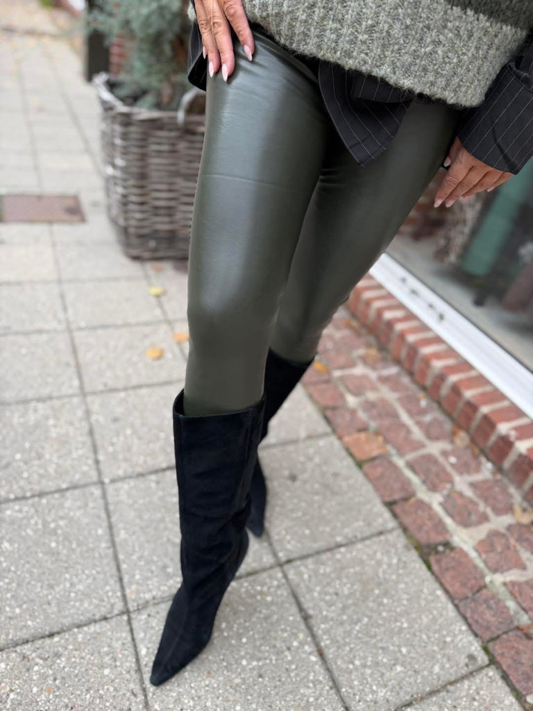 BESKRIVELSE: Lækker PU buks / leggin med elastik i taljen og slim fit.