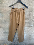 BESKRIVELSE: Flotte bukser med lommer i siden og elastik i taljen. Der er meget stræk i stoffet, så de er behagelige bløde at have på..