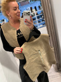BESKRIVELSE: Kort teddyvest med stort guld logo broderi på ryg.