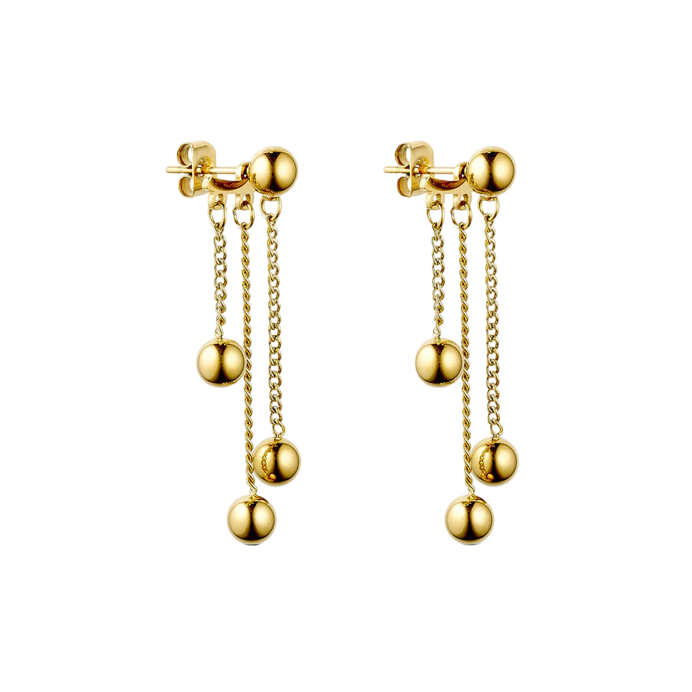 BESKRIVELSE: Disse fortryllende øreringe udstråler en luksuriøs glans, og tilføjer et strejf af sofistikeret charme til enhver lejlighed. De fine kæder afsluttes med smukke bobler, hvilket skaber en iøjnefaldende effekt, der bevæger sig yndefuldt med dig. Perfekte til både hverdag og særlige begivenheder, disse øreringe er et must-have til din smykkesamling.