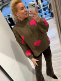 BESKRIVELSE: Lækker strikbluse med rund hals og lange ærmer. Der er strikkede hjerter all over. Der er rib i alle kanter.