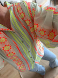 BESKRIVELSE: Smart skjorte / bluse med rund hals, der går ned i gennemgående stolpe. Du kan sagtens bruge jakke som en løs let jakke over fx kjoler. Den har lange ballonærmer med smal manchet for enden.