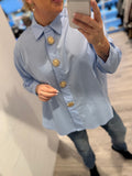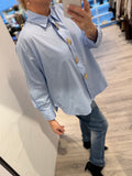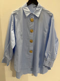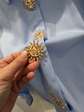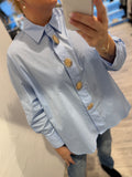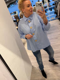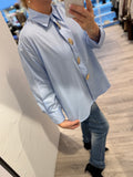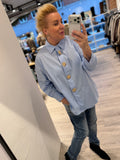 BESKRIVELSE: Smart skjorte med almindelig krave og lange ærmer med manchet. Ærmerne kan smøges op og ned, efter behov. Den har smukke guldfarvede knapper, som ligner en sol.