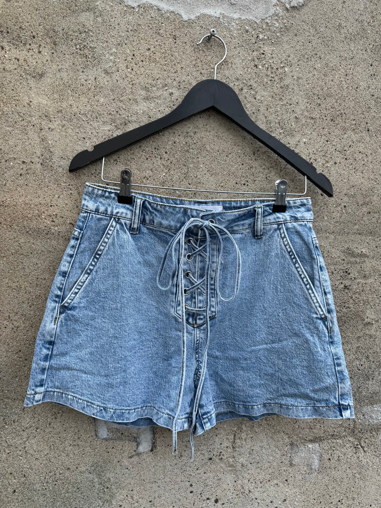 BESKRIVELSE: Flotte shorts i denim. De lukkes med snøre foran og har lommer i siden, samt baglommer.