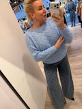 BESKRIVELSE: Smuk strik med lige rund hals og lange raglan-ærmer. Strikket er i mønster, så den er let gennemsigtig. Virkelig fin med top under eller en skjorte.
